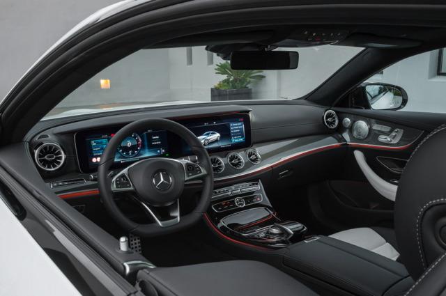 Pour ne pas gâcher le plaisir, Mercedes met à disposition un bloc 2 litres 4 cylindres turbo essence de 265 ch. Là aussi, pas d’inquiétude, il ne manque pas d’énergie pour tirer sans peine notre élégant Classe E coupé. La boite automatique à 9 rapports pleine de douceur, permet ainsi au conducteur de s’occuper de l’essentiel, c’est à dire jouir du confort offert à bord. Et on n’a pas envie franchement de se bousculer, on préfère profiter de la balade. Il ne faut pas pour autant qu’un camion ou un camping vienne gâcher la fête. Pas de problème, une simple pression sur l’accélérateur, et ces chicanes mobiles se voient effacées en quelques instants. Les chiffres de la fiche technique en témoignent, avec un 0 à 100 km/h exécuté en 6,4 secondes et une vitesse de pointe électroniquement bridée à 250 km/h.