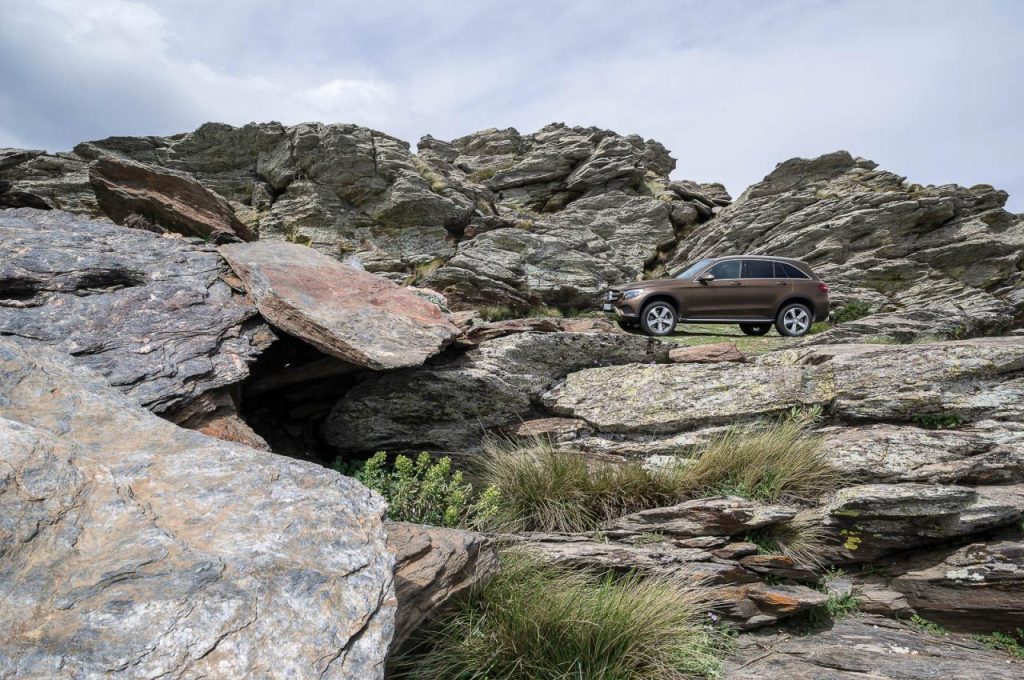 Avec le sobre moteur Diesel de 170 ch, il tient là son compagnon le plus homogène. Sa puissance, suffisante, offre des performances honnêtes, à l’instar d’un 0 à 100 km/h en moins de 9 secondes. Son silence de fonctionnement et sa souplesse participent d’ailleurs également au confort général. En outre, la nouvelle boîte automatique à 9 rapports, bien plus efficace que l’ancienne, lisse tous les passages de vitesses, et surtout se montre plus rapide. La consommation y gagne, tout comme les émissions, qui ne lui impose pas de malus. Sa transmission intégrale permanente ne nous a pas permis de voir son influence sur le comportement, compte tenu d’un bitume sec sous nos roues. Néanmoins il existe un pack offroad, comprenant plusieurs modes pour le tout-terrain, une garde au sol rehaussée, des boucliers plus adaptés et une aide à la descente. Aucun concurrent direct ne propose ce genre d’option aussi évoluée, rendant ainsi le GLC le plus polyvalent.