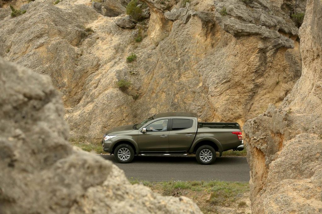A bord, on quitte le monde de la benne utilitaire, pour celui des SUV et crossovers. On y retrouve une planche de bord à la présentation certes simple, mais qui n’a pas habituellement sa place dans ce type de véhicule. Suivant la finition choisie, on trouve un bel écran multifonctions avec navigation, une climatisation automatique et des équipements qui relèvent plutôt de la familiale. Cela étant, point de rembourrage ou de plastiques moussés. Les matériaux sont plutôt durs, et bien arrimés par des vis apparentes. De cette façon, le professionnel n’aura pas de scrupule à souiller son intérieur… D’ailleurs, l’un des gros atouts de ce L200, réside dans sa capacité d’accueil. On se trouve bien à l’aise, sur des sièges et une banquette larges, et de l’espace pour chacun. Parfait pour faire visiter son vignoble ! Il n’est pas évident pour nous de juger sa capacité de chargement, mais il est intéressant de noter que certains clients et autres professionnels indépendants se tournent vers lui pour une pure question fiscale. En effet, par son statut d’utilitaire, il échappe à la taxe relative au gramme de CO2. Ce qui fait tout de suite réfléchir quand on a besoin d’une voiture pour crapahuter.