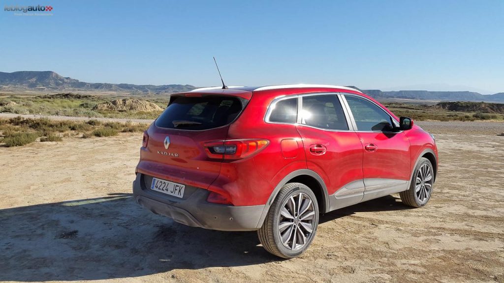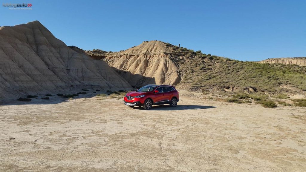 Les occasions de mener ce type de véhicule hors des routes seront a priori rares, mais nous nous sommes permis de le faire à travers le désert des Bardenas aux chemins stabilisés et particulièrement roulants. Du moment qu’il ne pleut pas la transmission intégrale baptisée Xmod chez Renault et uniquement disponible aujourd’hui avec le Diesel, apparaît superflue. La motricité largement suffisante couplée à la hauteur de caisse surélevée et un amortissement bien géré, permet d’évoluer à haute vitesse sans rien abîmer… en dehors de lever de la poussière qui s’infiltre à l’intérieur. On se plait même carrément à mener le Kadjar sur ce terrain où l’électronique ne vient pas trop gâcher la fête, autorisant ainsi quelques jolies dérives. En fait, on s’ennuie autant sur la route qu’on s’amuse sur les chemins à son volant. Mais en le resituant dans son contexte de concurrence, même s’il apparaît moins agile et plaisant à conduire que le Peugeot 3008 qui fait figure de référence sur la question dans le segment, le Kadjar s’avère de bon niveau face aux autres acteurs asiatiques du marché.