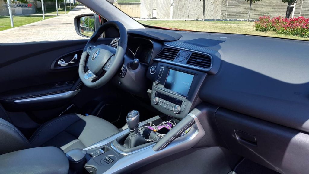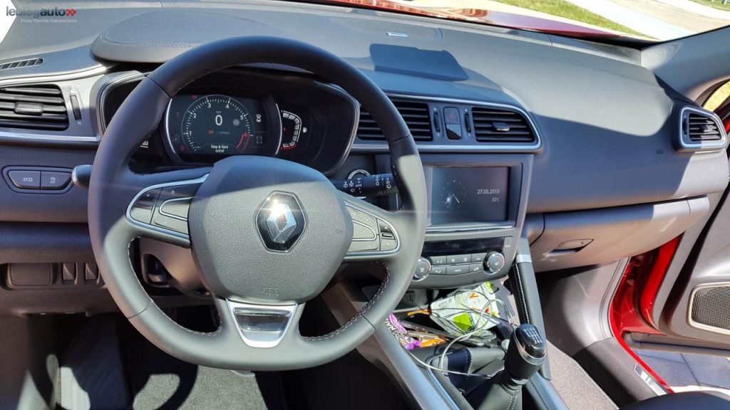 L’intérieur tranche en revanche avec le Captur, par une qualité de finition et une présentation de bien meilleure facture. On se situe peu ou prou au niveau de la Mégane, en restant assez éloigné encore de la nouvelle référence chez Renault en la matière, l’Espace. En termes d’équipements, le Kadjar apparaît mieux doté qu’un Peugeot 3008, mais n’apporte rien de spécial en plus par rapport au Qashqai. Voire moins d’ailleurs, à l’image de l’aide au stationnement perfectionnée à 4 caméras du japonais, contre une juste pour le recul sur le français. Toutefois, on apprécie l’écran à la place des compteurs qui facilite largement la lecture. Quant au système R-Link 2 sur la console centrale depuis lequel on commande tout à l’exception de la climatisation, il faudra quelque temps d’adaptation à son utilisation, à qui voudra bien faire l’effort.