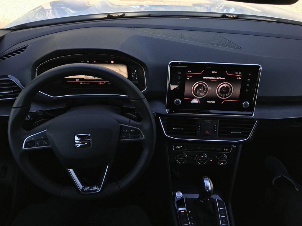 À l’intérieur la présentation moderne l’inscrit clairement dans l’air du temps. Un bandeau courant le long du tableau de bord lui donne même une petite touche de chic. Seat a simplifié la vie à bord, avec un large écran en position flottante, où on navigue pour tout ce qui touche au GPS et les technologies de divertissement au top niveau.