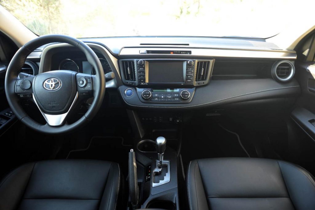A l’intérieur, on note quelques ajustements en termes de choix de matériaux, et aussi de qualité de finition. Toutefois, il faut se contenter d’un simple similicuir avec une surpiqûre pour rehausser un peu le cachet de cet habitable globalement triste. Néanmoins il faut reconnaître le confort de la sellerie, et l’espace à bord qui participe à la sensation d’aisance pour chacun des passagers. Au chapitre des équipements, le RAV4 ne manque de rien, que ce soit en termes d’aides à la conduite (maintien de file, régulateur à radar etc…) ou de fonctions de vie à bord. L’aspect daté et l’ergonomie perfectible de l’écran tactile, posent quelques petits problèmes d’intuitivité.