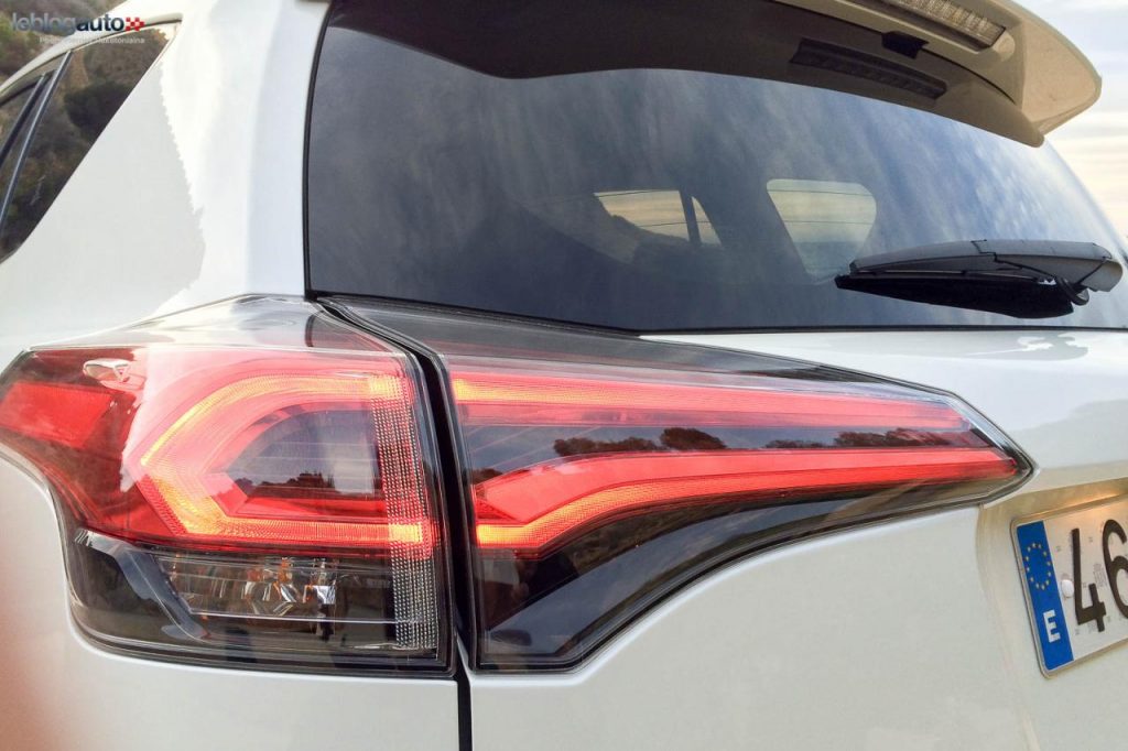 Toyota arbore un nouveau langage de style, déjà vu sur les faces avant des Aygo, Auris, Avensis et Yaris. C’est au tour du RAV4 désormais, qui voit ses phares plus discrets, reliés par un bandeau noir, avec le logo bleuté en son centre. Avec les feux arrière également redessinés, le SUV exhibe une signature full LED, à l’avant comme à l’arrière, qui le rend ainsi plus moderne. Il dispose tout de même de quelques signes distinctifs qui le démarquent des autres modèles de la gamme, avec simplement quelques badges disséminés sur les côtés et à l’arrière. Les deux boucliers également remodelés font partie du package de modifications. Quant au profil, il n’évolue pas d’un pouce ! Voici pour le tour du propriétaire.