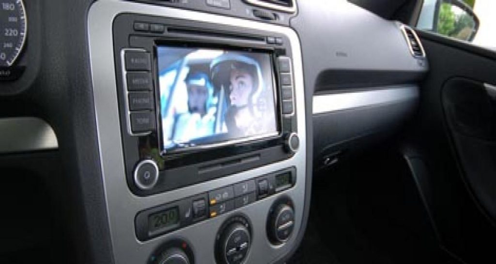 On peut penser qu’il s’agit d’un détail, mais la première chose que l’on entend d’une voiture, c’est le bruit des portes. Celles de l’Eos annoncent tout de suite que la qualité de finition et la robustesse ont été les maîtres-mots dans la réalisation de l’Eos. Le siège électrique se règle au millimètre et offre un maintien excellent et un confort qui, à défaut d’être moelleux, est bien présent. Le coussin gonflable au niveau des lombaires est tout bonnement génial. Le système Easy Entry, électrique lui aussi, permet d’avancer le siège pour faire monter un occupant à l’arrière de l’Eos. Il n’est cependant pas plus pratique qu’un siège basculant et avançant manuellement à cause de sa lenteur. L’Eos dispose bien entendu de l’allumage automatique des projecteurs et d’un détecteur de pluie qui sont toujours appréciables. Le tableau de bord est lisible et agréable, rétro éclairé en bleu. La planche de bord intègre le GPS à écran tactile. Ce dernier, rapide et intuitif, s’avère pratique grâce à ses instructions vocales jouant sur le niveau sonore de la radio si cette dernière est en marche. Le fonctionnement global du système, qui intègre également le lecteur de CD et de DVD, l’accès au disque dur et à l’entrée auxiliaire, et donc le GPS est très fonctionnel.