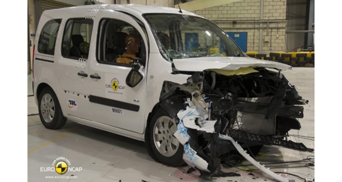 Quoi qu’il en soit, dans le détail, on peut tout de même voir la conception relativement ancienne du Kangoo sous cette robe du Citan. Le conducteur subit des blessures relativement importante, tant au thorax qu’aux jambes en frontal, avec un gros moins sur le choc latéral. Le passager s’en sort un peu mieux, à moins qu’il subisse le coup du lapin. Et les piétons ne sont pas mieux lotis puisqu’en choc piéton le Citan perd une étoile.