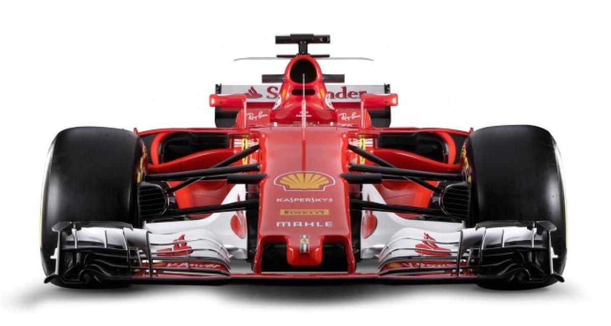 Pour la voiture, celle-ci arbore une aérodynamique très fouillée visiblement. Elle n’a pas un physique facile dirons certains mais du moment que c’est efficace. Sur la SF70H, on n’échappe pas au « doigt » qui permet de reculer le museau tout en passant les crash-tests FIA frontaux. L’aileron avant, cintré, a sa cascade de plans « à vague » désormais habituel en F1. On notera tout de même que les plans ne sont pas attachés aux dérives latérales.