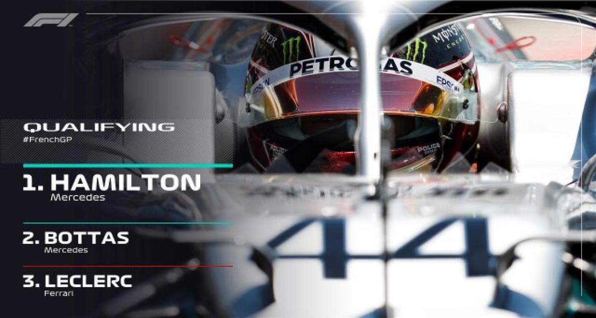 Pole position pour Hamilton devant Bottas et Leclerc. Très belle performance des McLaren et du débutant Norris qui bat Sainz. Les deux « papayes » sont d’un souffle derrière la Red Bull de Verstappen. Demain, la course entre les deux Mercedes va-t-elle se jouer au première virage ? Et surtout, va-t-on vers une 8e victoire de rang pour Mercedes ? Cela reste encore loin de 2016, saison où Mercedes a enchaîné 10 victoires d’affilé (et remporté 19 courses sur 21 !).