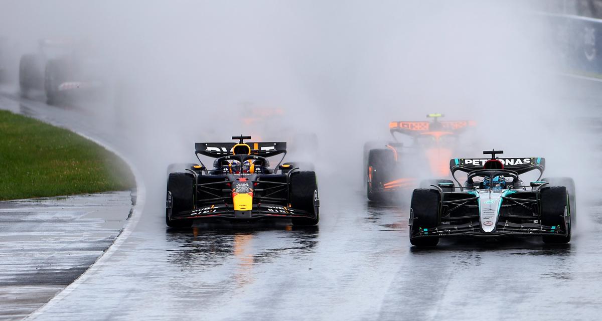 Maintenant, la météo annonce la fin de la pluie pour le reste du GP. Le nouveau pari des équipes et des pilotes sera le moment quand passer les slicks. Pas simple. Verstappen emmène toujours tout ce petit monde, devant Russell et les deux McLaren. Hamilton n'est pas loin de Piastri après s'être débarrassé d'Alonso. Les McLaren semblent économiser les pneus pour mieux filer plus tard ? Le calice jusqu'à la lie pour Leclerc qui a des drapeaux bleus pour laisser passer Verstappen.