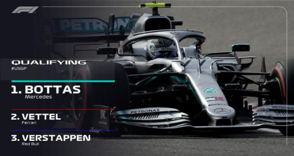 Valtteri Bottas signe sa 11e pole position en carrière, sa 5e cette année. C’est la 6e pole consécutive de Mercedes à Austin. Bottas met fin à la série de 6 poles de Ferrari.