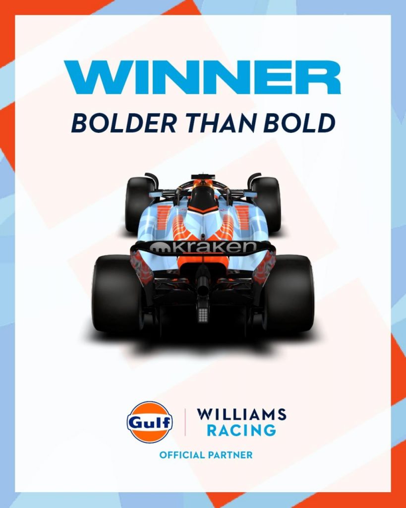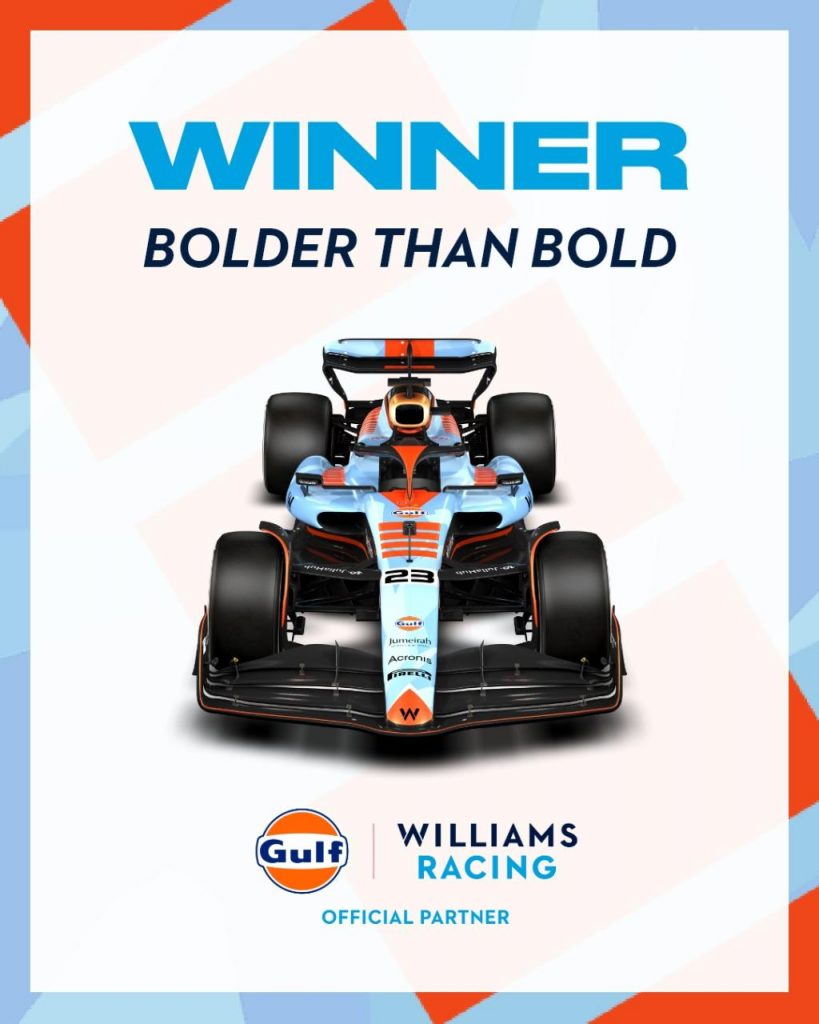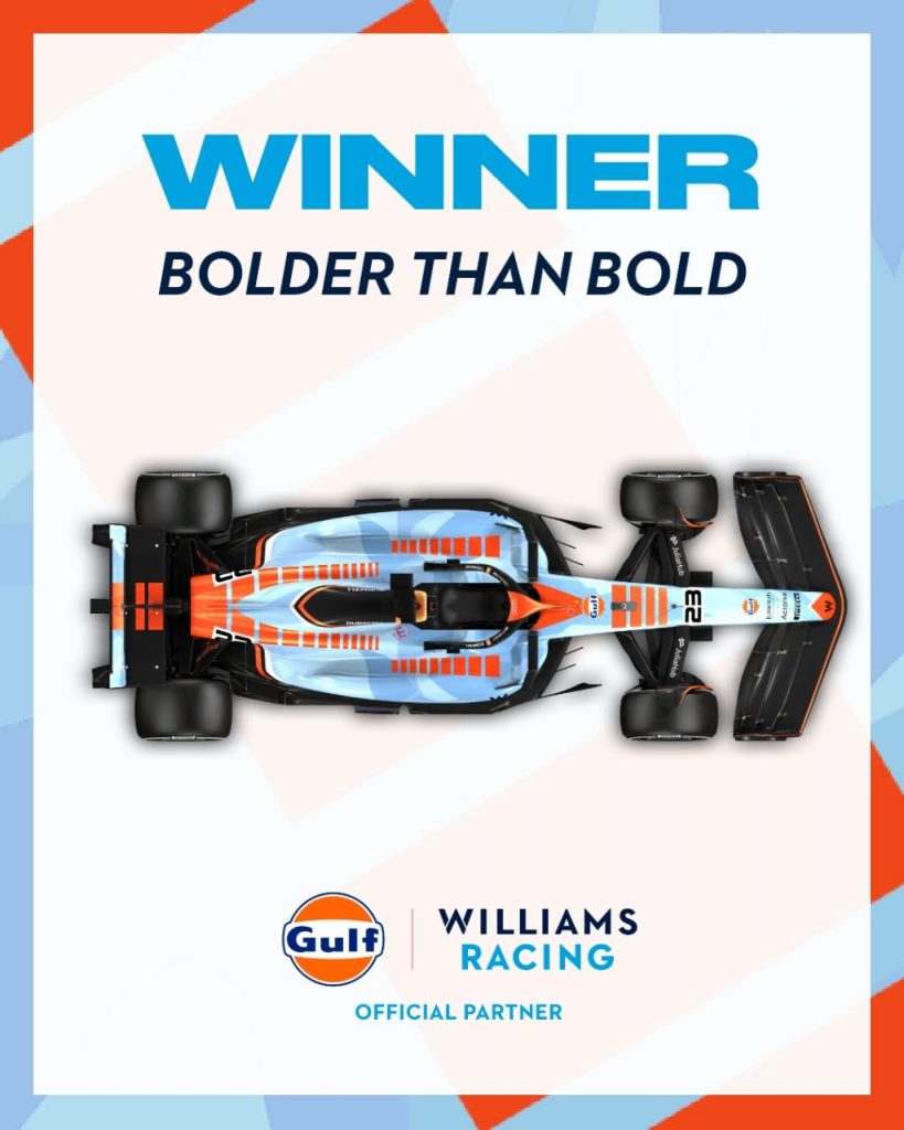 Quelques mois plus tôt, Williams et la compagnie pétrolière américaine Gulf Oil avaient décidé de célébrer leur partenariat en proposant aux fans de choisir, via un vote, parmi 4 livrées afin de déterminer celle qui serait arborée par les monoplaces d'Aexander Albon et Logan Sargeant pour les grands prix du Japon, de Singapour et du Qatar.