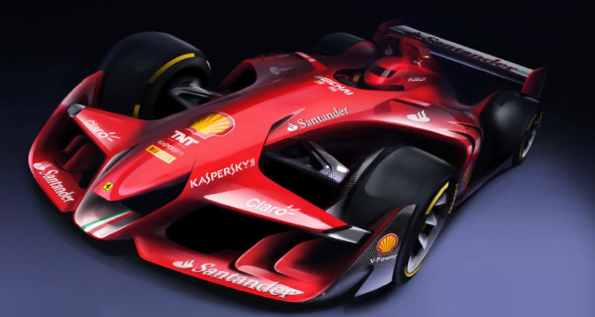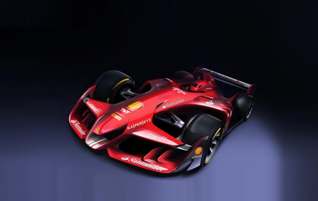 Aujourd’hui se tient une réunion de la « Commission F1 » pour parler de l’avenir de la discipline. Entre moteur V6 1600 turbo hybride « libérés » de la contrainte de consommation instantanée et allant donc flirter avec les 1000 chevaux (et plus de bruit…) ou le retour des pneus larges, la commission a du pain sur la planche. En attendant, Ferrari donne dans l’imagination avec ce concept étrange.
