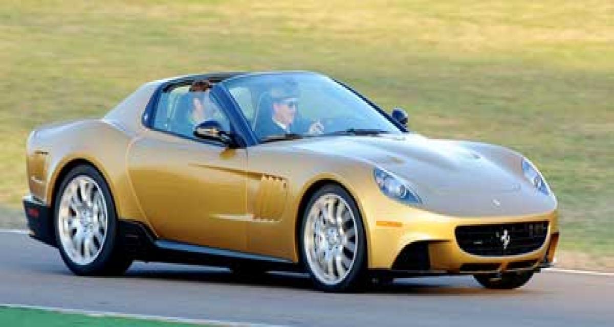 On en retrouve plus ou moins les lignes générales appliquées sur la 599 qui se fait donneuse d’organes, ainsi que la couleur dorée. Dessinée par Pininfarina et assemblée à Maranello avec un lien étroit avec futur propriétaire. Malgré l’ablation du toit (d’où l’appellation Aperta, « ouvert » en italien), qui implique d’importants renforts, la prise de poids est limitée à 20 kg grâce à l’emploi de fibre de carbone.