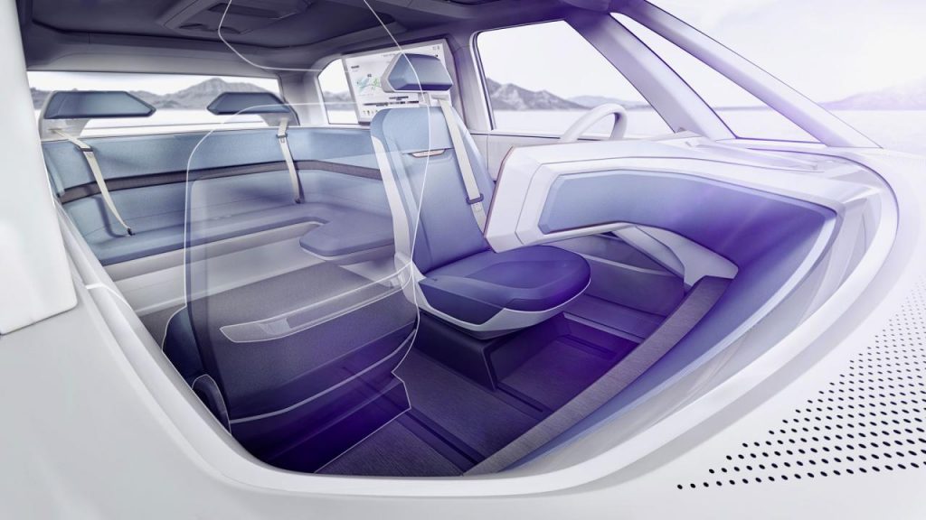 Une nouvelle interprétation du Microbus ? A force d’user la corde, on finit par ne plus y croire. Ceci même quand le communiqué officiel de présentation du Budd-e insiste fortement sur l’année 2019 ou sur le positionnement idéal entre Touran et Multivan.