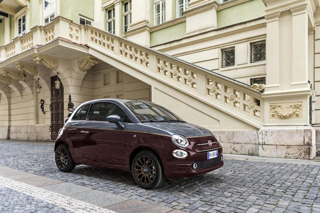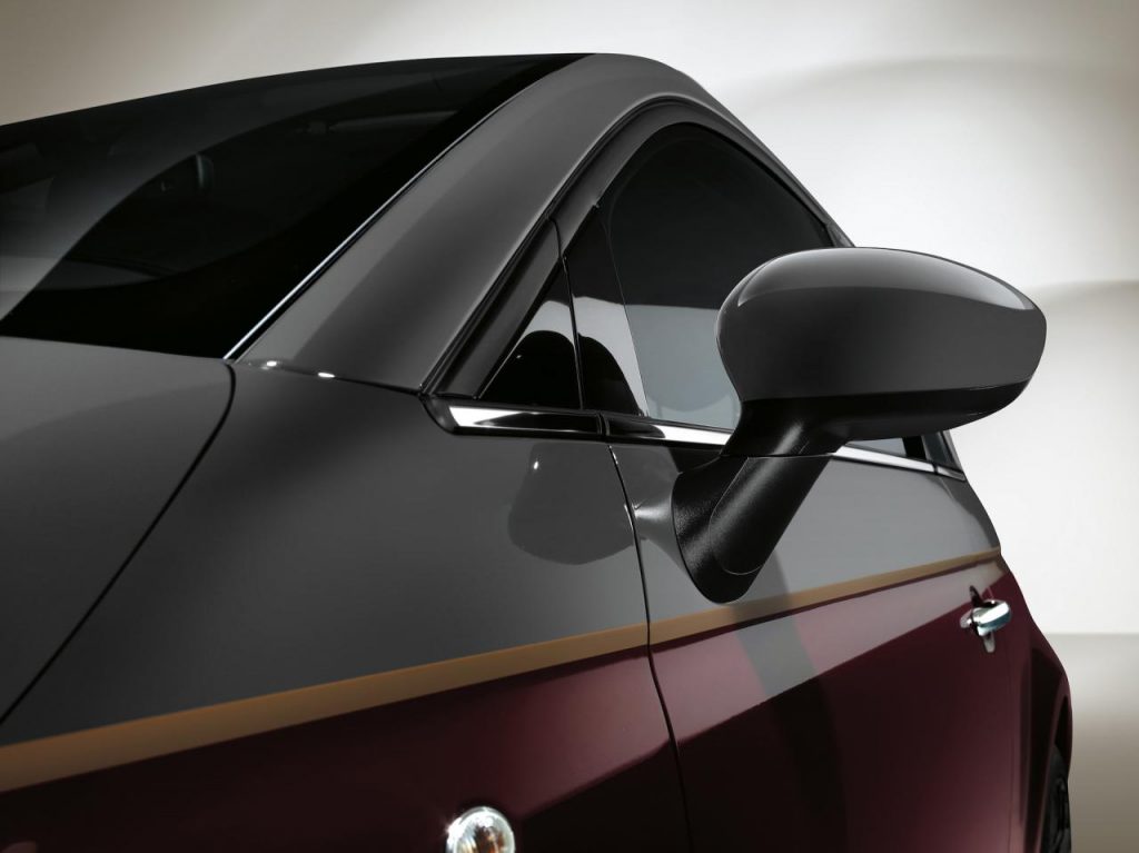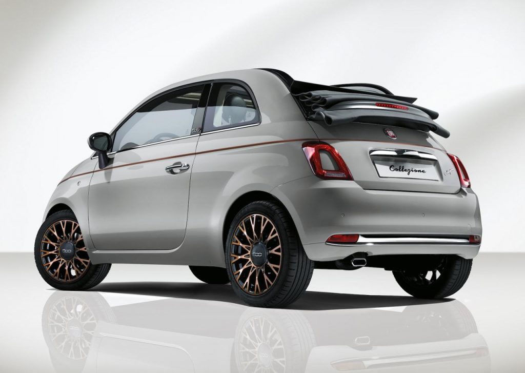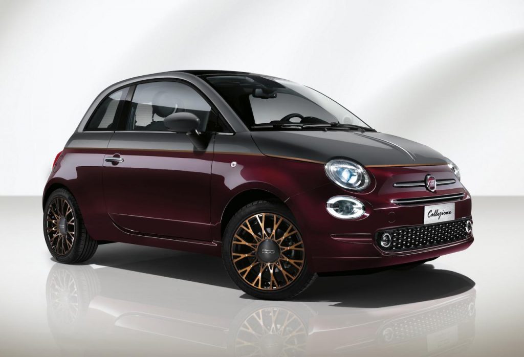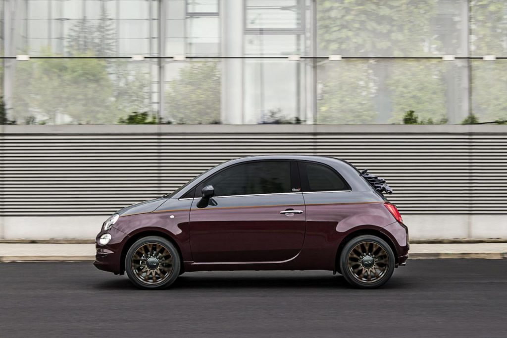 Proposée dans les deux variantes, 3 portes et cabriolet, la 500 Collezione Edition reçoit des teintes bicolores automnales comme cette livrée Bordeaux Opéra et Tech House Grey baptisée « Brunello » sur les photos. Il est aussi possible de choisir parmi des teintes uniques comme le gris Tech House Grey, le noir Crossover Black et le Cortina Grey. La Fiat 500 Collezione reçoit également un liseré cuivré qui rappelle les jantes en alliage 16 pouces.