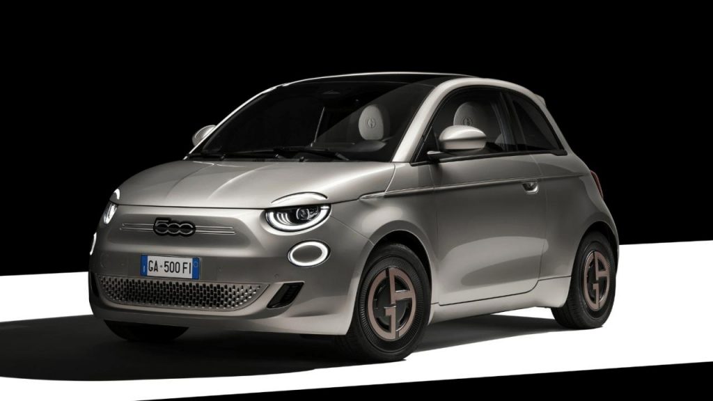 La Fiat 500e Giorgio Armani se distingue par le logo du maestro milanais sur les roues et sur le siège, tandis que la signature du designer italien apparaît sur le tableau de bord, à l'intérieur des portes et sur la lunette arrière. La voiture comprend des phares Full LED Infinity Design et un toit en verre. En termes de technologie, le véhicule est équipé d'un système audio JBL haut de gamme, d'un écran TFT 7″, d'un écran tactile NAV 10,25″, d'une radio DAB et d'un CarPlay/Android Auto sans fil.