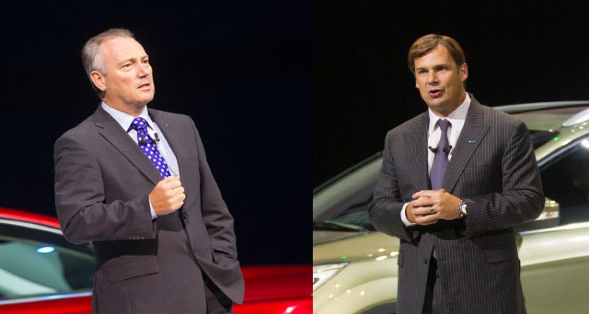 A la tête de Ford Europe / Moyen-Orient / Afrique depuis 2010, Stephen Odell (à gauche sur notre illustration, 59 ans et entré chez Ford en 1980) lourdement restructuré l’implantation de la marque sur notre continent, en particulier avec les difficiles décisions de fermeture de Genk, Southampton et Dagenham.