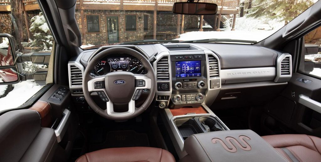 De style il est quand même question, avec une nouvelle face avant ornée d’une calandre qui semble encore plus imposante, et encadrée de phares à LED avec une signature lumineuse plus soignée. Histoire d’imposer plus encore sa marque (il est le seul du segment à se nommer Super Duty et non Heavy Duty), le F-Series ajoute la mention en relief au bout de son capot. A l’intérieur, la plus grosse évolution concerne l’instrumentation et le système multimédia connecté.