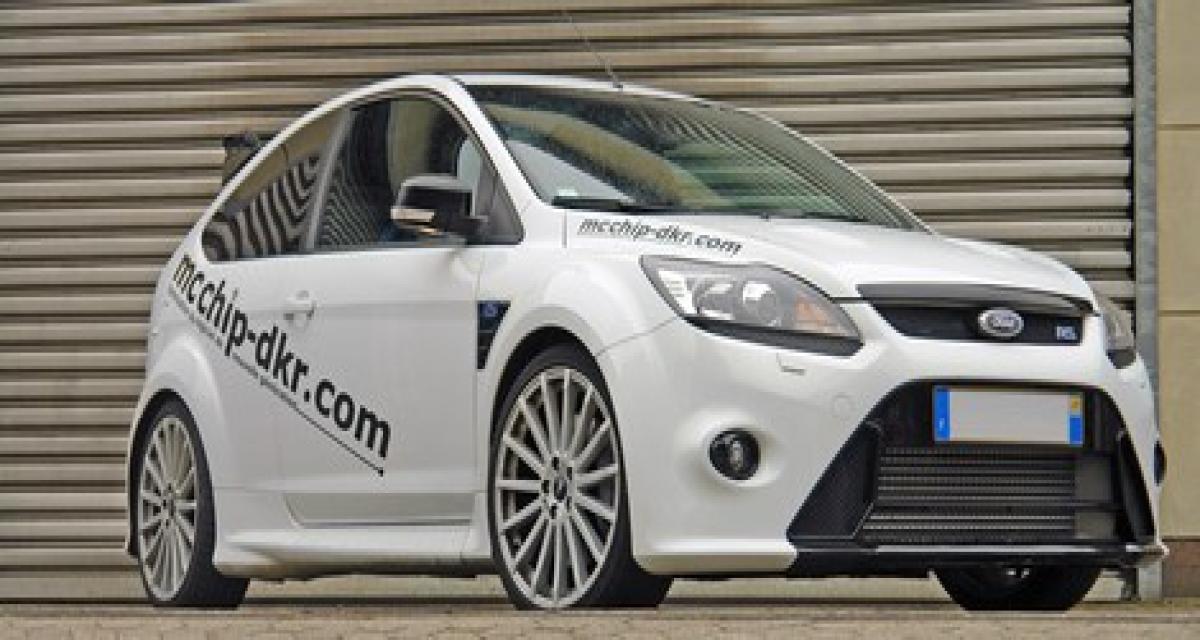 305 ch et 440 Nm, voici ce qu’offre de série la Ford Focus RS, celle qui vient du reste de voir sa production augmenter de 400 unités pour l’Allemagne. L’Allemagne nous y restons pour apprécier la préparation proposée par Mcchip-DKR.