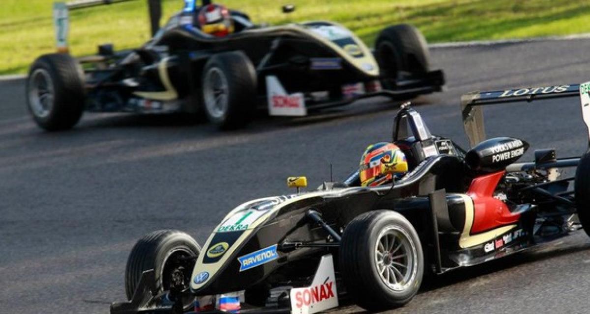 Pour la course 3, la piste est détrempée. Néanmoins, suite au coup de poker payant de Bryant-Meisner, la plupart des pilotes optent pour les slicks. Bernstorff et Kirchhoefer sont les premiers leaders, devant Bryant-Meisner et Markelov. L’Anglais part à la faute et Kirchhoefer prend les commandes. Puis l’Allemand commet lui aussi une erreur. Bernstorff repasse, tout comme Markelov, qui s’est débarrassé de Bryant-Meisner. Ce coup-ci, l’Anglais tient le coup et mène le triplé des « Lotus Menscher ».