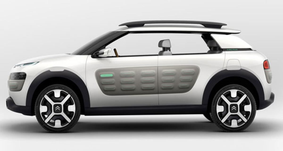 On y retrouve en particulier un regard proche de celui du C4 Picasso avec ses optiques en plusieurs parties, des formes rondes, qui donnent sans doute une orientation pour l’ensemble de la future gamme « C » de Citroën ,qui doit désormais s’orienter sur des modèles plus simples. Selon la nouvelle définition des rôles au sein de PSA. Sur les faces avant et arrière, comme sur les flancs, on trouve les « Airbumps », des protections souples, annoncés dans les communications précédentes. Comme sur le concept de 2007, on retrouve une volonté de symétrie entre le style des parties avant et arrière. Bien entendu nombre d’éléments sont encore à l’état de concept, comme les surfaces vitrées sans montant central.