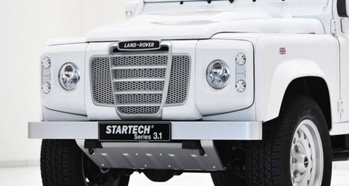 On peut aisément comparer le Series 3.1 concept au Mercedes Classe-G. Car c’est bien de cela dont il s’agit. Startech a en effet imaginé un Defender qui aurait suivi la même voie de modernisation et de montée en gamme que le tout-terrain étoilé. Avec une touche de rétro donné par une grille de calandre inspirée par le véritable Defender Series III. Sue une face avant plus moderne, dotée par exemple de phares à LED. La comparaison avec le Classe-G va jusqu’à des pièces communes… comme les rétroviseurs avec répétiteur de clignotant intégré.
