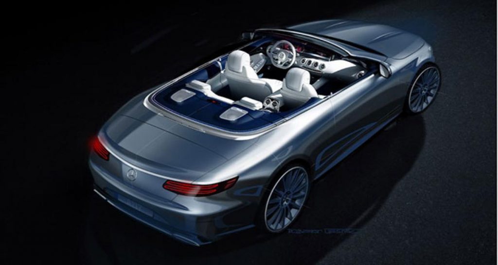 L’esquisse communiquée e contente de révéler un aperçu de l’arrière et de l’habitacle, qui sont assez logiquement très proches de ceux de la Classe-S Coupé. Du côté des particularités, des haut-parleurs Burmester semblent prendre place derrière les passagers arrière, et l’on peut s’attendre à voir un système de chauffage du type Airscarf, probablement pour les 4 places.