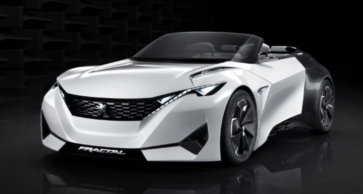 Intéressons-nous tout d’abord à la partie technique de ce coupé Fractal. Deux moteurs placés dans les deux trains avant et arrière développent chacun 75 kW pour un total de 150 kW/204 ch. Ils sont alimentés par une batterie lithium-ion de 40 kWh (un peu moins du double des batteries des VE « classique ») et Peugeot annonce la recharge par induction et une autonomie en cycle mixte de plus de 450 km soit moins de 10 kWh/100 km.