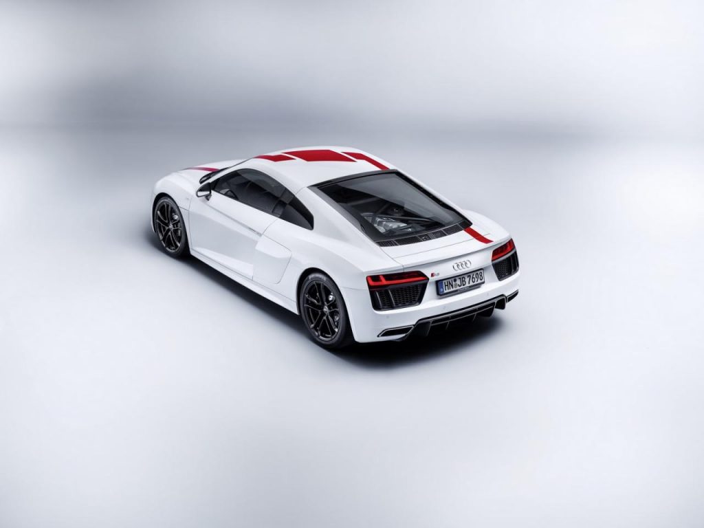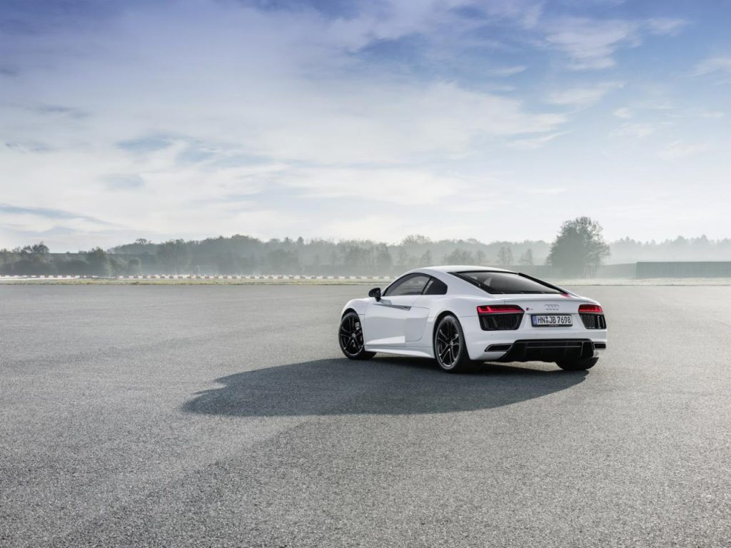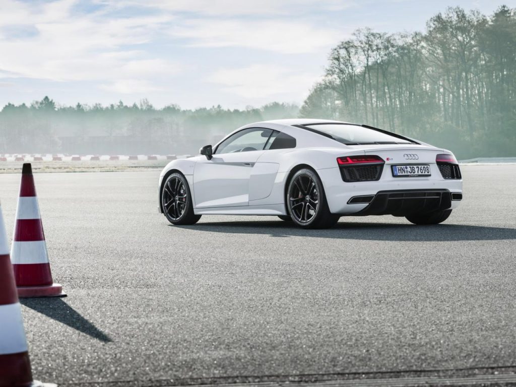 Disponible en Coupé et Spyder, cette R8 un peu spéciale se débarrasse de sa traditionnelle transmission Quattro au profit d’une transmission de la puissance aux seules roues arrière. Ce passage à la propulsion permet à l’Audi R8 de gagner 50 kg sur la balance et passer ainsi sous les 1 600 kg pour ne peser « que » 1 590 kg.