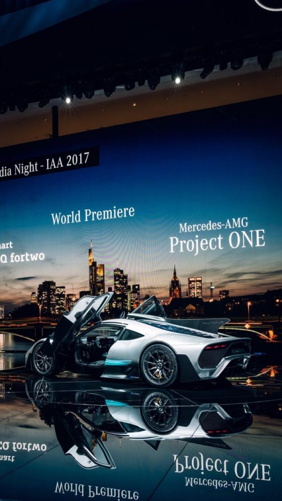 Pour AMG c’est un gâteau d’anniversaire. Cela fait 50 ans que la gamme existe. Le gâteau, c’est donc cette Mercedes-AMG Project ONE. Plus de 1000 chevaux issus d’un V6 turbo hybride. Comme en Formule 1. C’est d’ailleurs le leitmotiv affirmé de cette Project ONE.