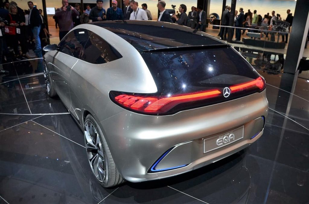 Le concept EQA adopte globalement la même face avant que le précédent concept avec notamment une calandre lumineuse. Le gabarit est proche de la Classe A actuelle (4,30 mètres contre 4,28 mètres pour le concept) mais les lignes sont bien plus épurées (concept oblige) comme sur la Concept A Sedan de Shanghaï.