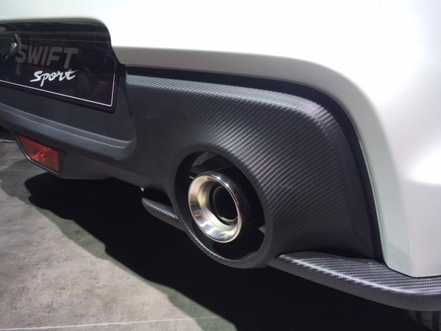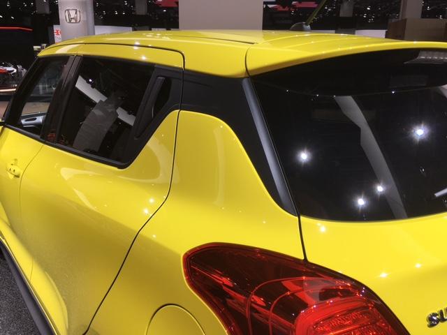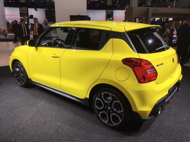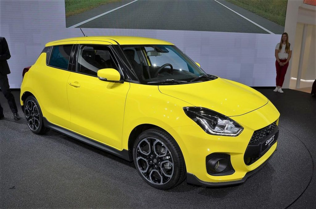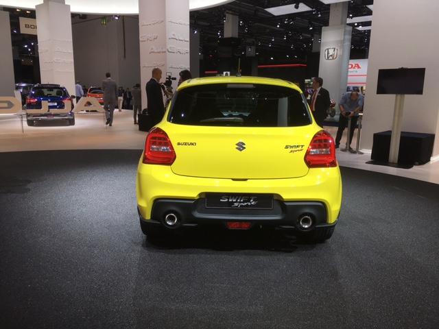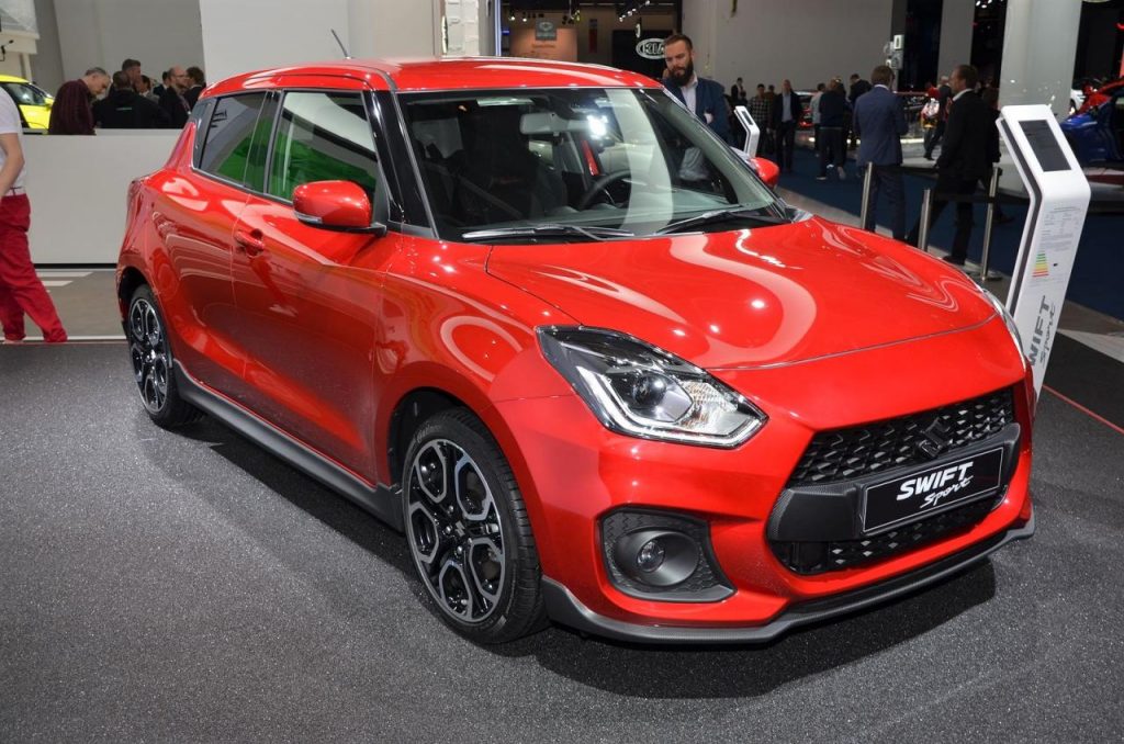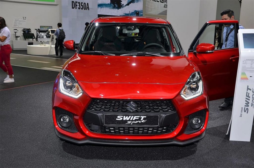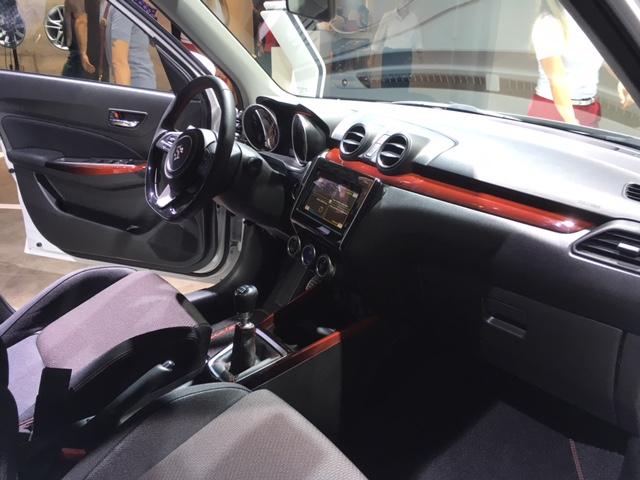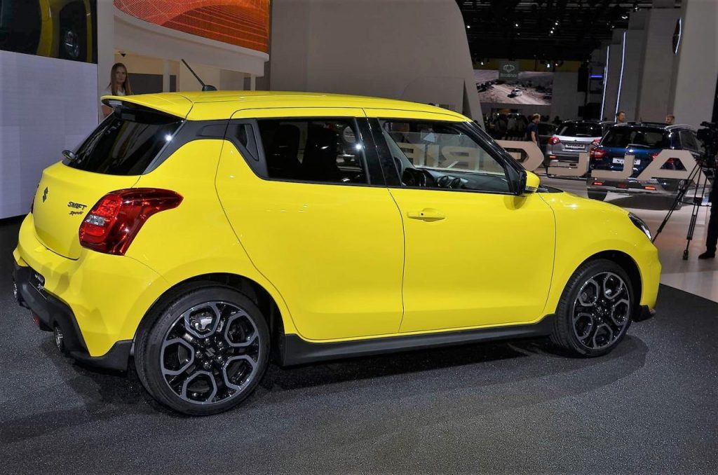 La petite sportive nous est déjà familière grâce aux premiers clichés révélés fin juillet. Elle se différencie de ses sœurs par un bouclier avant équipé d’une calandre plus massive, un spoiler et des bas de caisses spécifiques ainsi que des jantes à cinq bâtons aux galbes tout en rondeurs et des jantes de 17 pouces. À l’arrière la Swift Sport se dote d’un petit diffuseur entouré de deux sorties d’échappement.