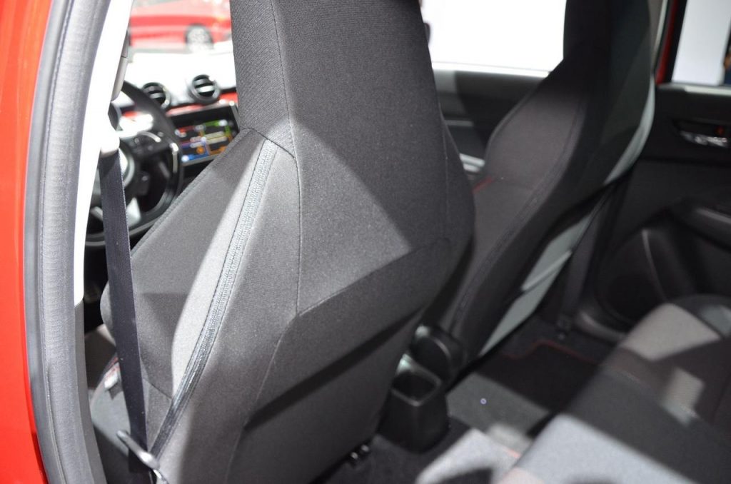 Dans l’habitacle le thème sportif est aussi de rigueur avec sièges sport façon baquet, un volant à méplat et divers inserts parsemés dans l’habitacle. Plus longue de 20 mm, plus large de 40 mm et plus basse de 15 mm que sa devancière, la Swift Sport est aussi plus légère de 80 kg avec un poids total qui passe sous la tonne à 970 kg.