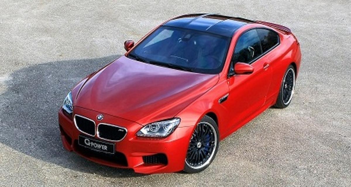 Un X6 Typhoon RS de 700 ch, une M3 poussée à 720 ch, une M6 Hurricane RR à 800 ch ou une 1M Hurricane RS de 600 ch, liste bien loin de se révéler exhaustive… Les experts allemands de G-Power ne sont pas les derniers à abattre de terribles préparations sur des modèles frappés de l’hélice offrant avant tout un bond en terme d’agrément mécanique. Ce n’est pas encore le cas sur cette BMW M6 Coupé mais ça ne saurait trader, certitude…Pour l’heure le préparateur allemand ne livre pas tous les détails ne ne publie plusieurs illustrations. On s’en tient donc aux menues informations et images mises en relief sur un célèbre réseau social. Pas encore totalement terrifiante, cette G-Power M6 Bi-Tronik III revendique quand même 640 ch et 777 Nm pour une vitesse de pointe débridée et revendiquant 310 km/h (contre 560 ch ou 305 km/h avec le pack M Driver).
