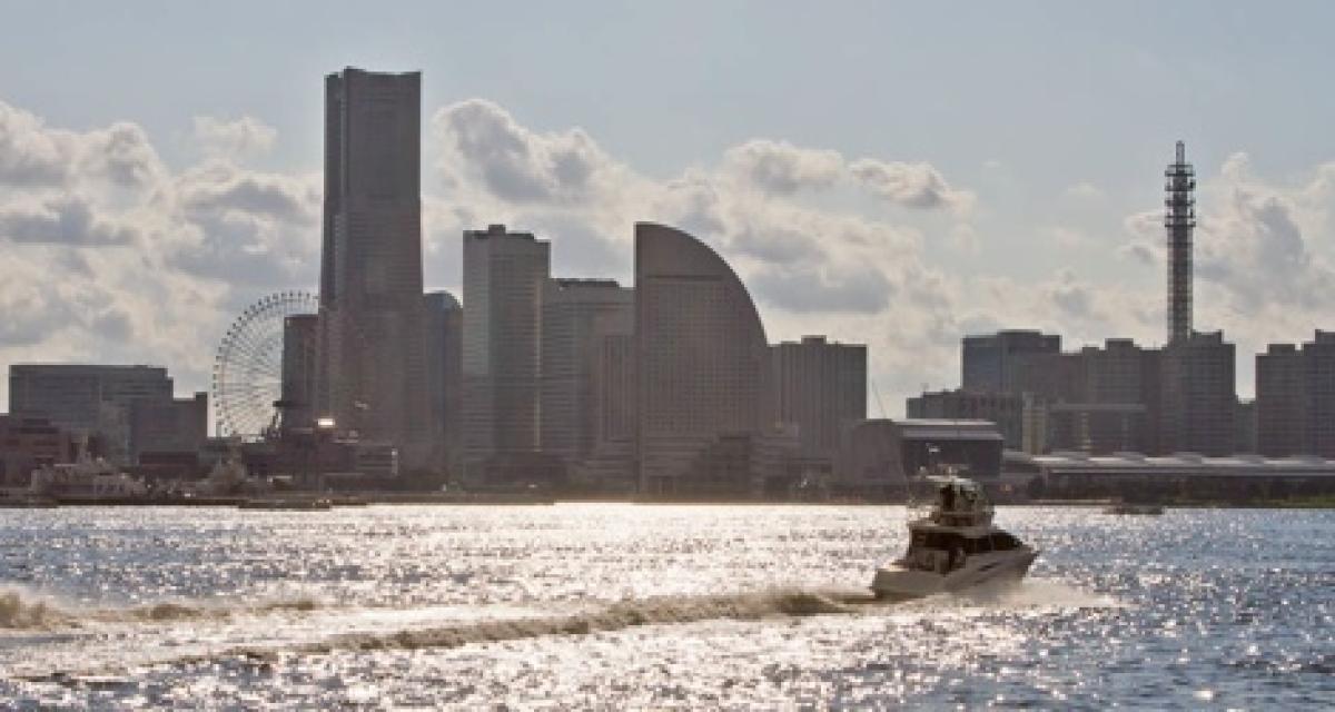 L’itinéraire de la balade dans la baie de Yokohama nous a permis (en passager), d’apprécier la puissance des deux gros V8 qui poussent fort et font beaucoup d’écume, le système de stabilisation étonnamment efficace, une découverte pour ceux d’entre nous, la plupart, qui ne montent pas dans un bateau tous les quatre matins. Ce fut une expérience fort agréable, d’autant qu’elle était doublée dès le retour au quai par un second tour de circuit, cette fois dans le vaisseau amiral, le Ponam 45 de 15m. C’est qu’on s’y ferait très vite, à son petit yacht. Et impossible, alors que le bateau fonce dans la baie sur fond de buildings et parallèle à l’autre vedette de la flotte Toyota, de ne pas entendre au fond de l’oreille les riffs eighties du générique de Miami Vice, même si la baie de Yokohama, ses porte-containers et ses entrepôts n’a pas le cachet des plages de Floride.