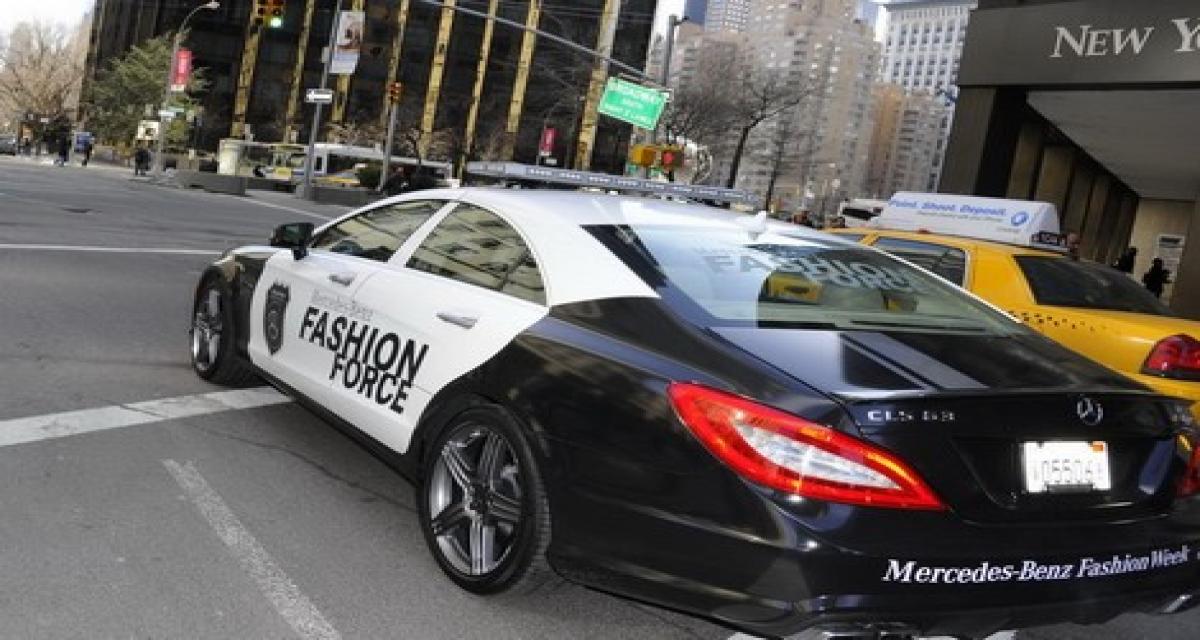 Actuellement à Manhattan, Mercedes ne laisse pas passer cette occasion pour communiquer avec le grand public grâce notamment à cette brigade en CLS63 AMG nommée spécialement Fashion Force Patrol. Elle circulera dans la ville durant tout l’évènement à la recherche des tenues les plus « IN ». Le principe est simple, une fois la fashion victime repérée elle est aussitôt réprimandée par un petit tour à bord si elle le désire, puis amenée à sa destination (si elle en à une) et enfin prise en photo. Les plus de 500 chevaux du V8 devraient amplement suffire pour arrêter ces dangereux délinquants. Pour l’occasion elle arbore la tenue quasi typique de la police américaine. Cette unique CLS profite d’une teinte bicolore avec une face avant entièrement noire et des gyrophares tout de LEDs vêtus.