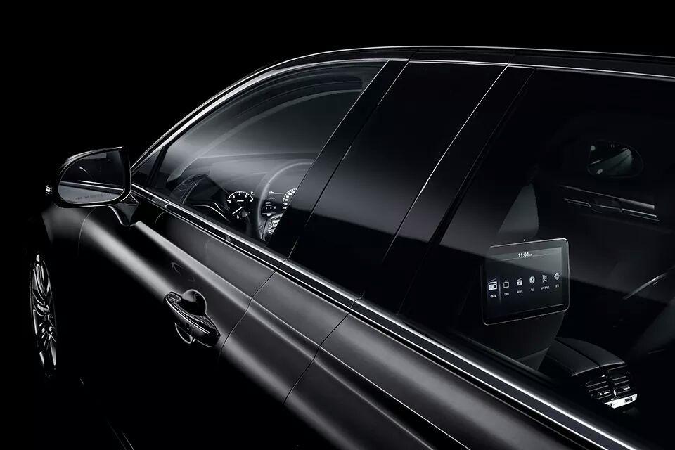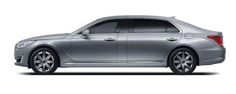 La Genesis EQ900L s’allonge donc de 290 mm, soit au total 5495 mm. Cette longueur supplémentaire se traduit extérieurement par une section supplémentaire, pleine, entre les portes avant et arrière.