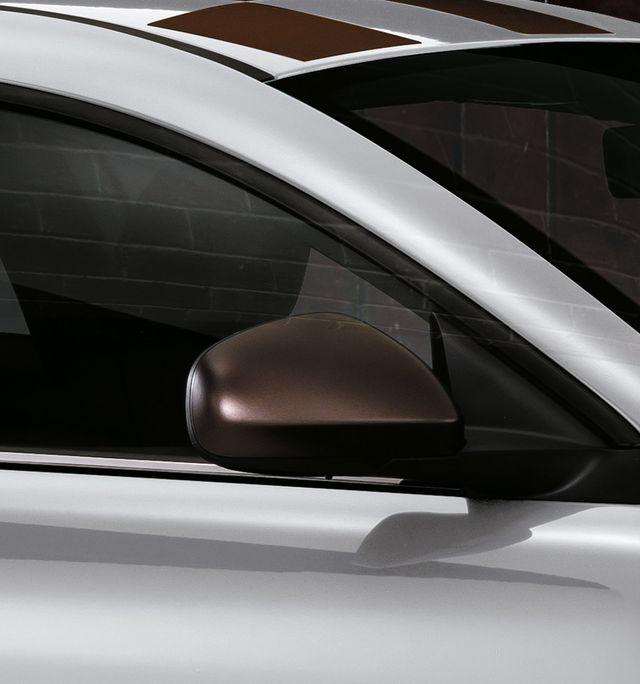 Pour cette édition spéciale Racer, la Mito a droit à 7 nouvelles teintes de carrosserie telles que ce nouveau thème blanc alliant les jantes de 17 pouces et les coques de rétroviseurs en bronze foncé. On note également la finition chrome satiné des poignées de portes et des entourages des feux avant et arrière, le pare-chocs arrière sport avec spoiler intégrant le tuyau d’échappement chromé et un sticker de toit à damier.