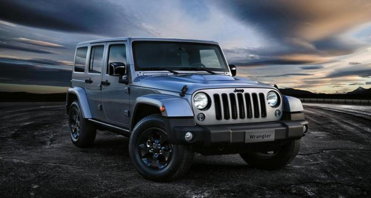 Cette série repose sur le Wrangler en finition Sahara se distinguant par le traitement noir de sa calandre (comme les rétros, emblème ou bouchon de réservoir), ses jantes alliage de 18″, tapis de sol spécifiques, sièges en cuir noir et inserts noirs mais aussi pack Dual Top.
