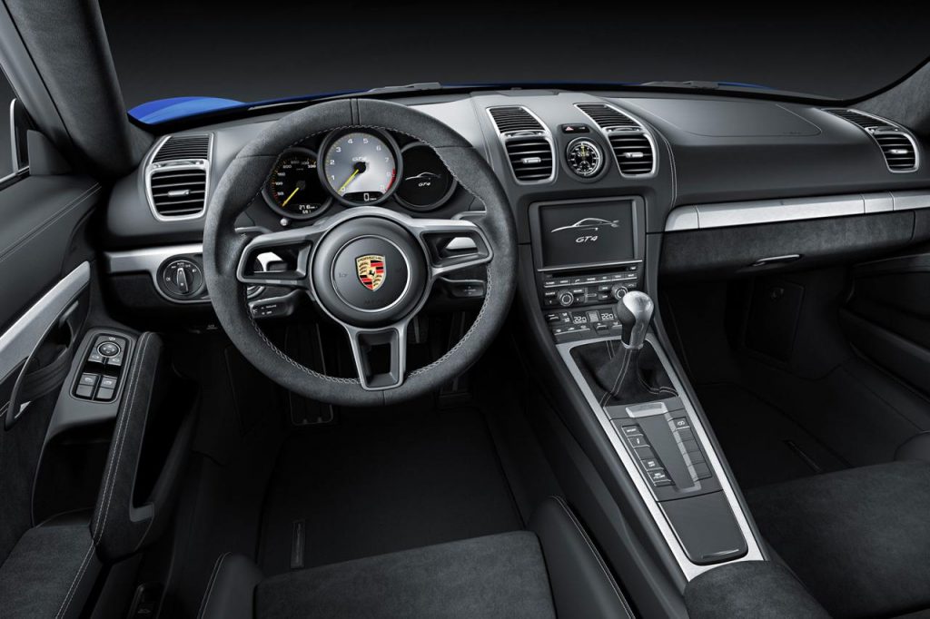 Concernant son aspect extérieur, la GT4 exprime sans ambiguïté sa différence, qu’il s’agisse du bouclier percé de trois grandes ouvertures ou de son grand aileron fixe. Un aspect qui n’a pas que des justifications stylistiques et Porsche souligne qu’il s’agit de la première Cayman avec un appui aérodynamique sur les deux essieux. Pas encore de détails (disponibles le mois prochain au salon de Genève) concernant le châssis hormis la disponibilité en option de disques de frein carbone / céramique PCCB.