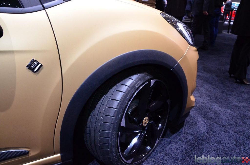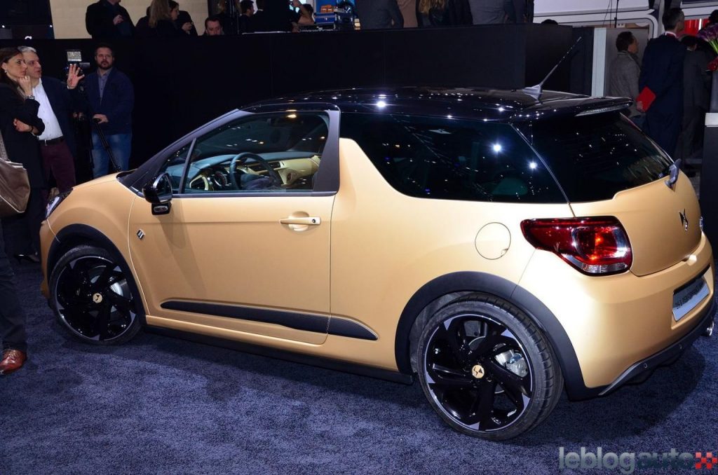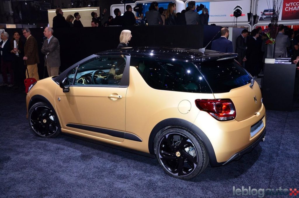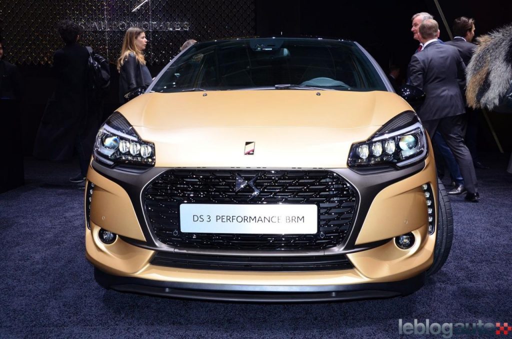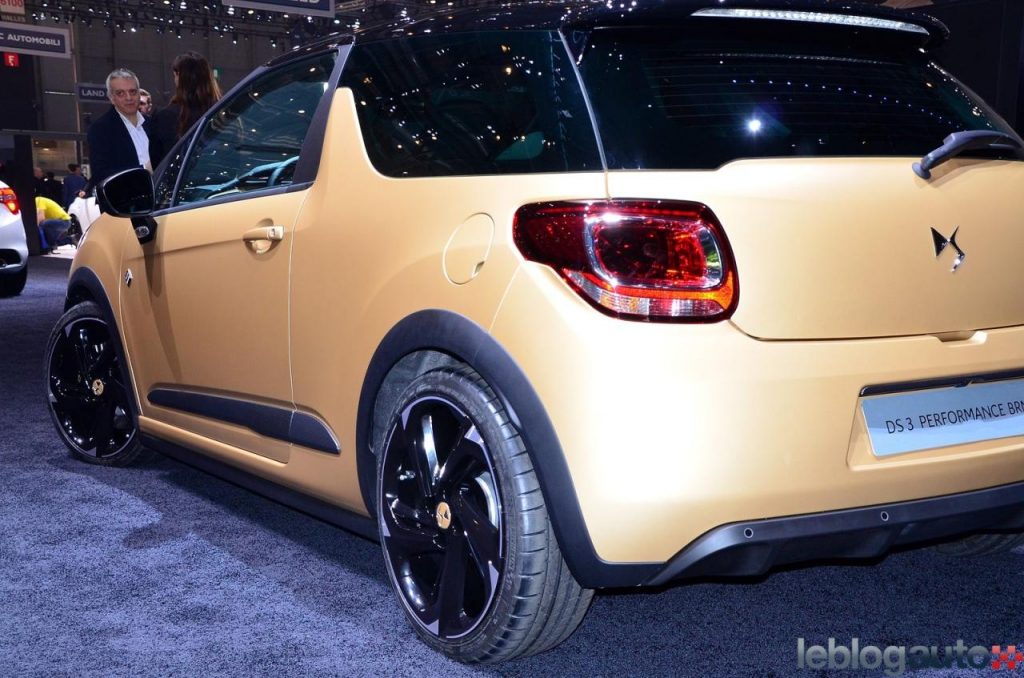 Enfin on découvre aussi la DS 3 Performance BRM Chronographes réalisée en partenariat avec l’horloger du même nom. Celle-ci, trente-neuf unités, combine des éléments en finition ton noir brillant (comme au niveau des coques de rétroviseurs ou toit) avec une livrée ton doré baptisée Golf Pearl mat.