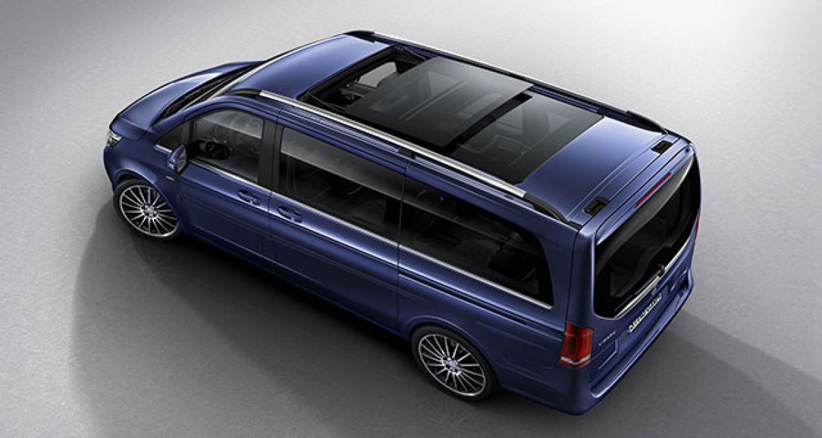 Le Classe-V a remplacé avec un certain succès le Viano, et veut se positionner comme un monospace haut de gamme et non pas comme un dérivé d’utilitaire. La version Exclusive compte donc renforcer cette impression et vient de série avec le toit panoramique, les jantes 19 pouces. A l’intérieur on trouvera un pavillon habillé de micro-fibre Dinamica (proche de l’Alcantara), d’une finition alu brossé de la planche de bord, du système audio Burmester, de la console centrale avec porte-gobelets chauffants / réfrigérés, une sellerie en cuir Nappa et des sièges de rang 1 et 2 chauffants et ventilés.