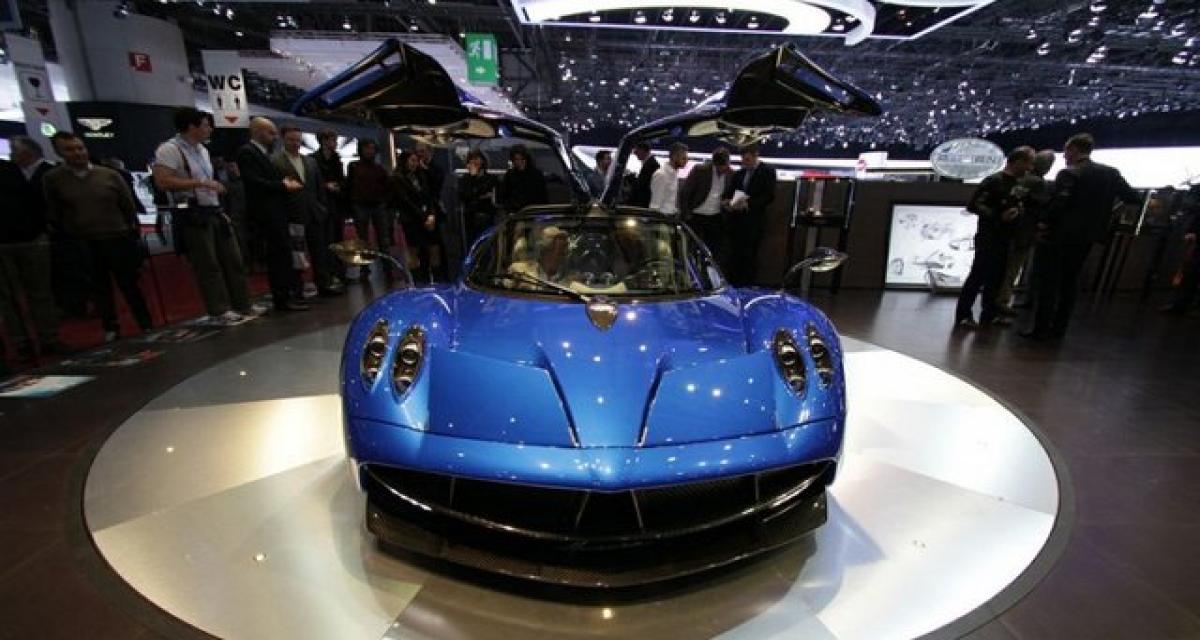 Une Pagani Huayra Roadster reprenant la cinématique de toit de son aînée devant adopter un toit amovible manuellement mais abandonnant ses ouvrants caractéristiques, ses portes papillon. Présentation programmée de la Huayra roadster en mars prochain à Genève.