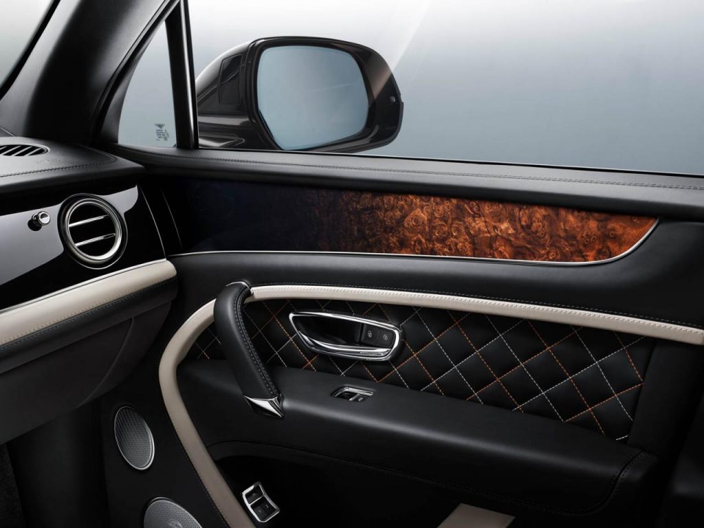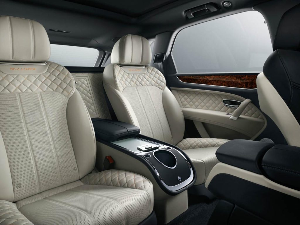 À l’intérieur, nous retrouvons toute l’expertise de Mulliner. Disponible en sept couleurs, la sellerie en cuir, cousue à la main, reçoit des surpiqûres et des broderies contrastées. Cette version Mulliner accueille aussi de nouveaux placages intérieurs « Ombré Burr Walnut ». L’équipement est lui aussi très exclusif avec notamment la montre Tourbillon by Breitling, option la plus chère actuellement dans le monde automobile, système audio Naim for Bentley de 950 W, un compartiment à bouteilles réfrigéré équipé de flûtes « Cumbria Crystal » fabriquées sur mesure et le panier pique-nique Linley.