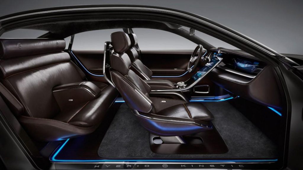 Et pour éviter tout impair en matière de style, Hybrid Kinetic s’est donc adressé à une référence européenne, Pininfarina. Ce qui n’empêchera pas le résultat d’être dépourvu de toute inspiration extérieur, comme en témoigne la berline HK600 dévoilée à Genève. Sans vouloir jouer de façon abusive au jeu des 7 erreurs (ou copies), on peut en effet y lire diverses évocations, Maserati, Lincoln…