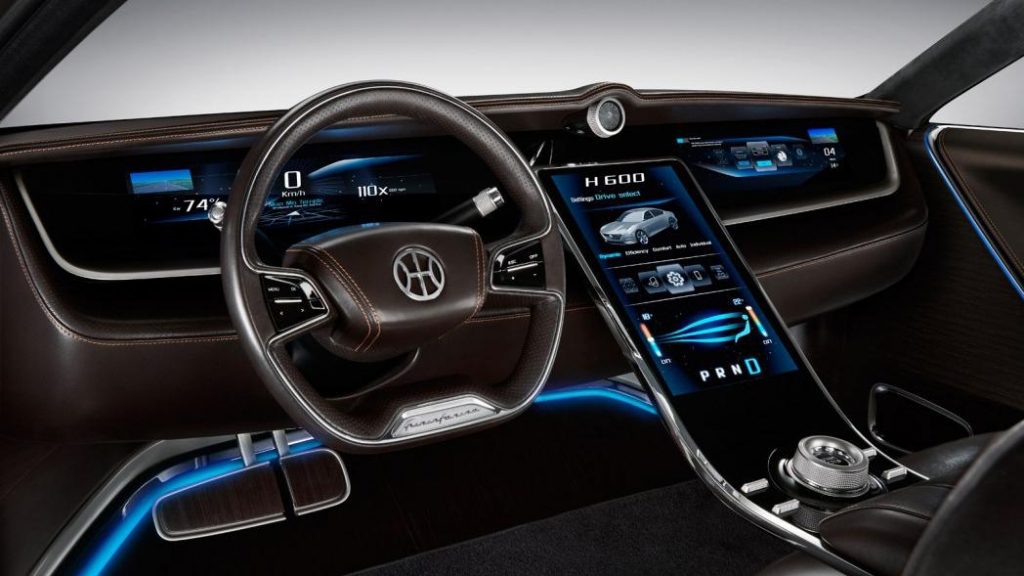 D’un point de vue technique, cette H600 adopte un principe similaire à celui de Techrules. Avec donc des moteurs électriques (4, pour un total de plus de 670 ch), une batterie, et une turbine. Et l’autonomie atteindrait 1000 km. Et cette berline de 5m20 de long, pesant 1870 kg passerait de 0 à 100 km/h en moins de 3 secondes. Le tout dans un écran de luxe et de confort pour les passagers.