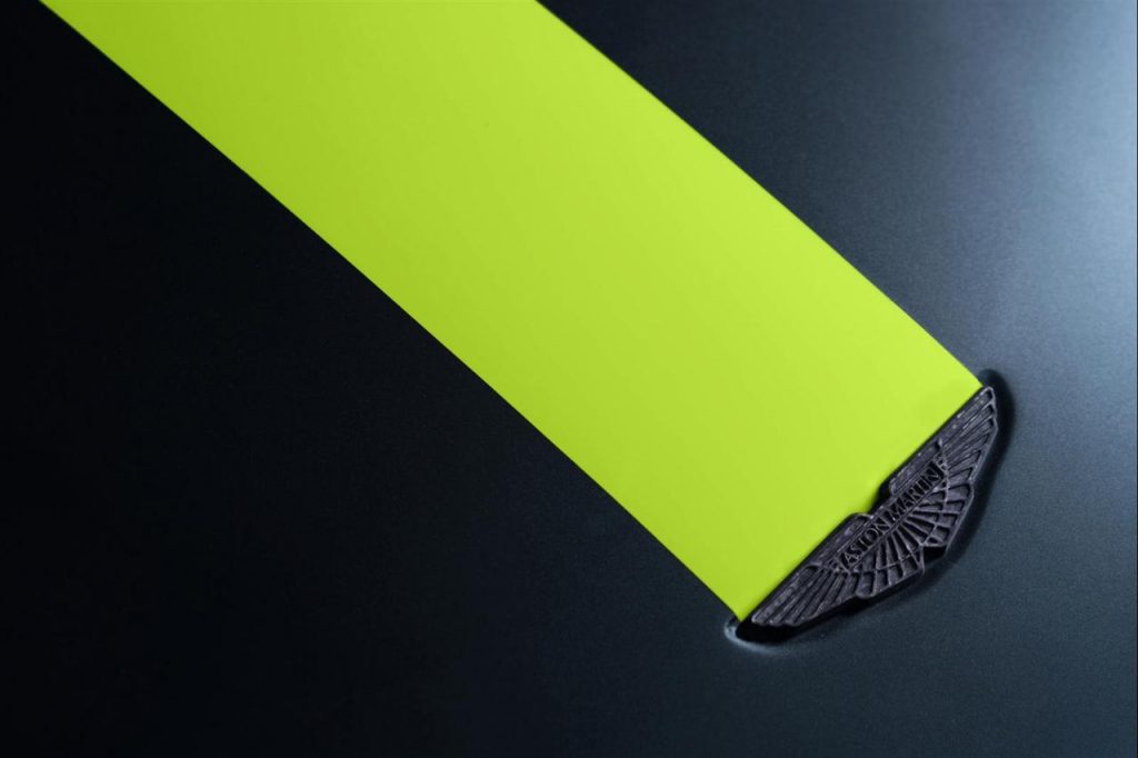 Pour illustrer la version « route » d’AMR, Aston Martin nous propose donc une Rapide AMR. Qui arbore les couleurs choisies pour symboliser ces versions, soit un très traditionnel Stirling Green, associé à une bande centrale et quelques détails « vert citron ». Elle arbore également un traitement spécifique de toute la partie basse, calandre y compris. A l’intérieur, la touche de vert électrique se retrouve, associée à du carbone largement présent et 4 sièges baquet. Tout n’est pas que style, puisque le V12 6.0 est porté de 558 à 600 ch. La vitesse maximale est annoncée à 336 km/h.