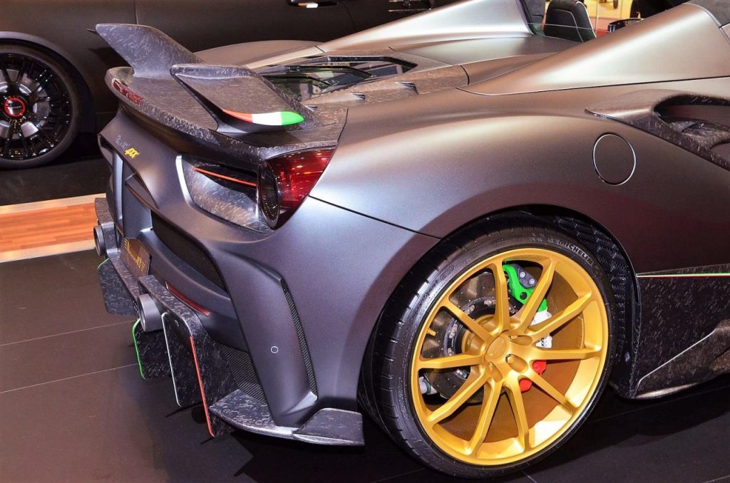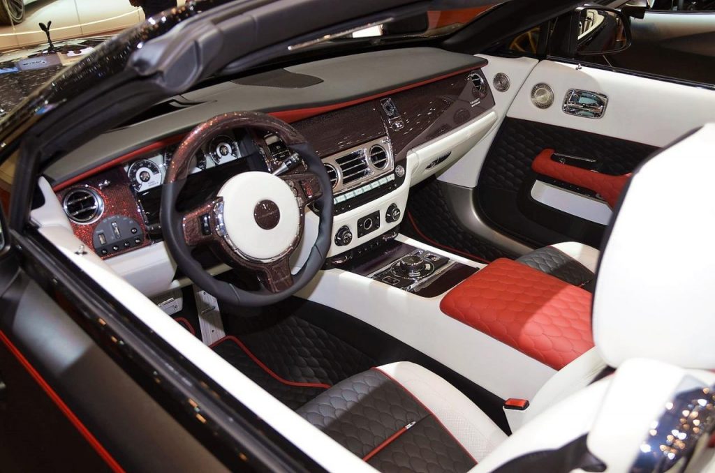 Impossible de passer outre le traitement décliné (infligé) au cabriolet Rolls-Royce Dawn qui gagne des éléments de carrosserie, des caoutchoucs en 265/35 et 295/30, des jantes de 22 pouces pour une finition extérieure très particulière… 740 ch et 1 000 Nm (+ 170 ch et + 220 Nm) sont au menu pour une vitesse maximale débridée à 285 km/h et un 0 à 100 km/h croqué en 4,5 s.