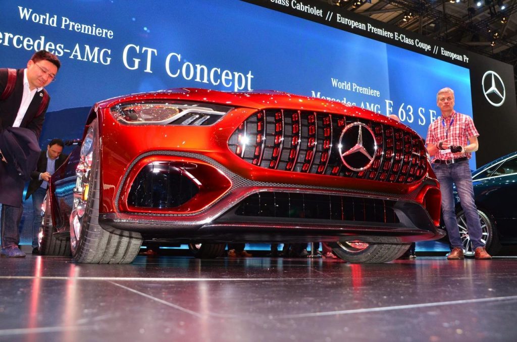 À l’instar du coupé et du cabriolet, l’AMG GT Concept a recours à tous les attributs visuels de la sportive prête a dévorer du bitume à toute vitesse ! Capot très long, regard agressif, bouclier avec larges entrées d’air à volets actifs…