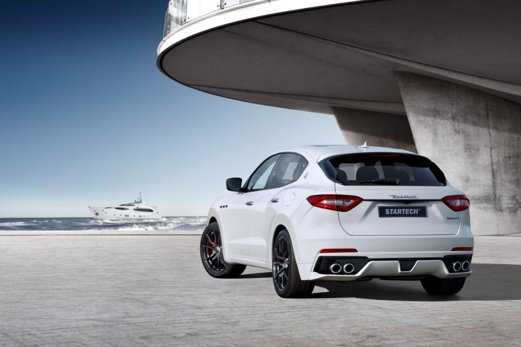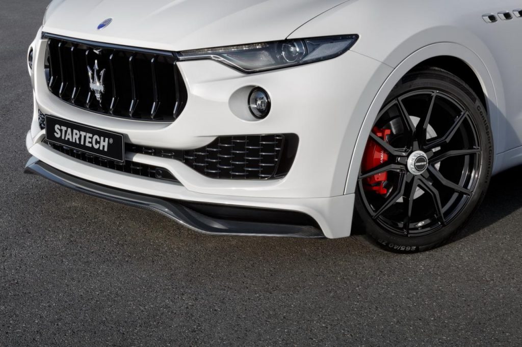 Range Rover, Bentley, Tesla.. Startech se penche donc sur Maserati et commence par le modèle dont le potentiel de ventes semble le plus élevé. Le SUV Levante. Avec un programme encore relativement léger, mais destiné à s’enrichir. Pour la partie carrosserie, les évolutions prévues par Startech sont des remplacements des parties basses des boucliers avant et arrière. Qui seront soit teinte caisse, soit en fibre de carbone. Startech ajoute également ses jantes 21 pouces, ainsi que des déflecteurs latéraux sur le hayon.